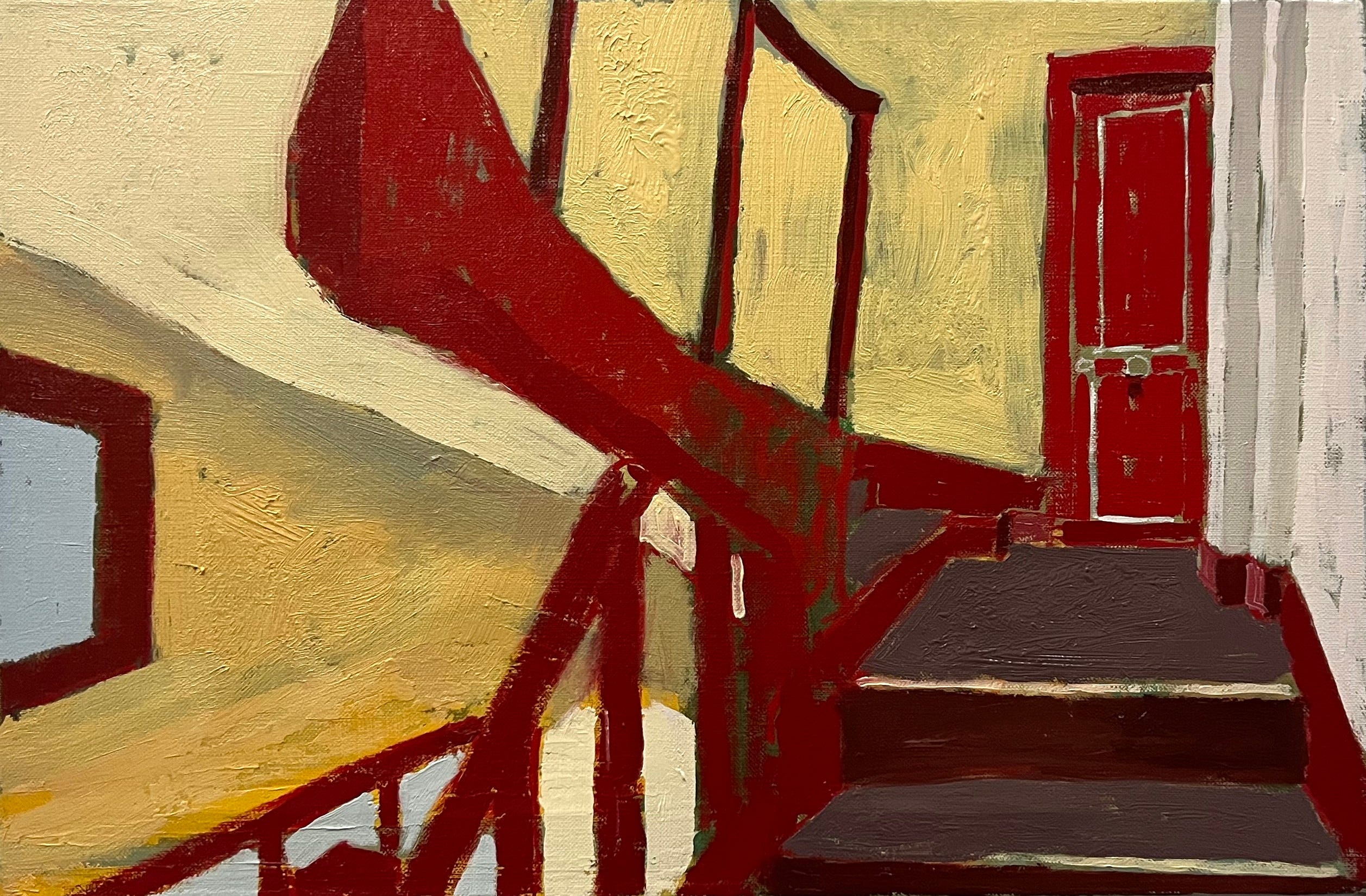 “Red Stairwell” is 11,000 euros ($13,000). You can email me, mitchell.catalog@gmail.com, or the gallery to hold either painting.