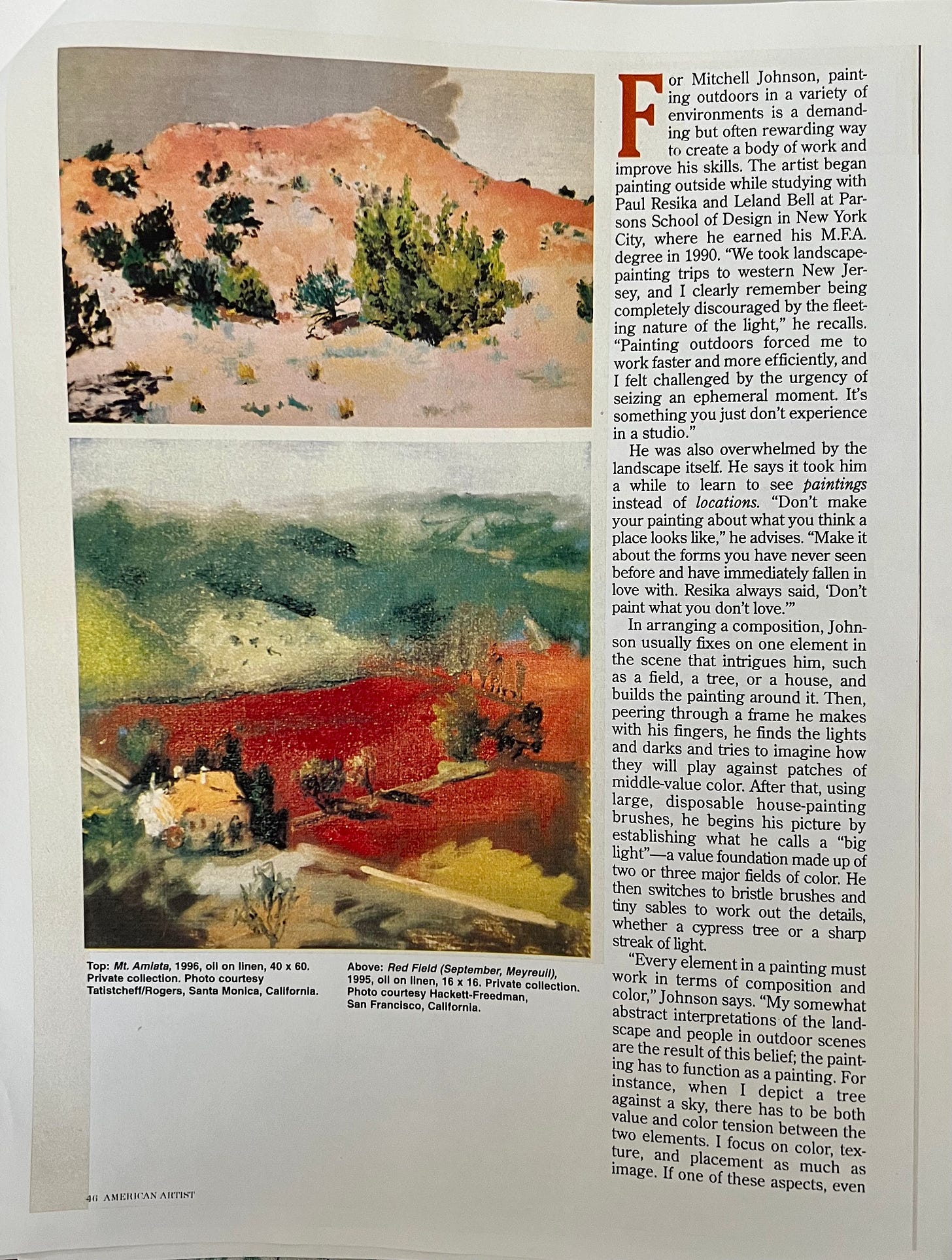 American Artist Magazine 1997 Article about Mitchell Johnson